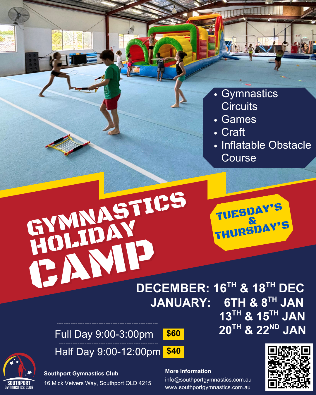 Our classes range from our Under 5s KinderGym program, recreational, competition squads and fitness for adults.